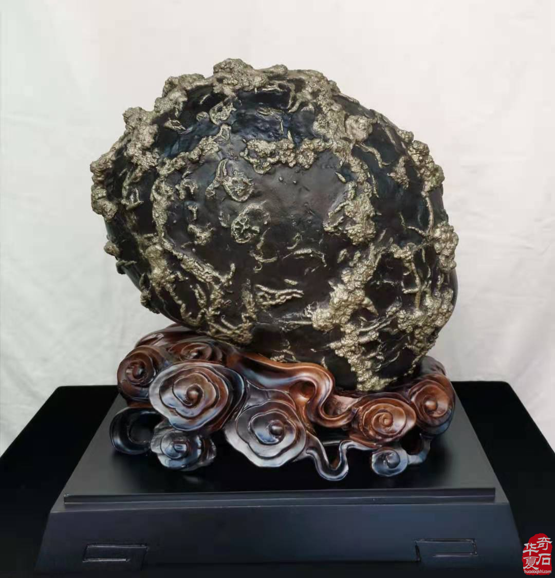 开始段瑞华只是利用业余时间来追逐自己的玩石梦想,渐渐地,便玩出了心得,在与各地石友的学习交流中,她逐渐坚定了将矿晶和观赏石的开发、收藏、展示与交流作为自己毕生追求的事业。为了实现自己的理想,还不到年龄的她就提前退休,着力打造自己家乡本土的石头和矿物晶体,创建了瑞华阁观赏石艺术馆。建馆以后,为了收藏更多的观赏石,她走遍祖国的千山万水,听到哪里有观赏石的传闻,就马不停蹄地前去询问,并想尽办法收藏下来。2017年初,她在石友的馆里看到一方很奇特的石头,很是喜欢,便问是哪里产的。石友告诉她这是娄底本地的石头,她当时惊喜万分,没想到自己的家乡还有如此精美且特色鲜明的石头,这是她第一次认识镶金铁胆石,此后就与它结下不解之缘。
